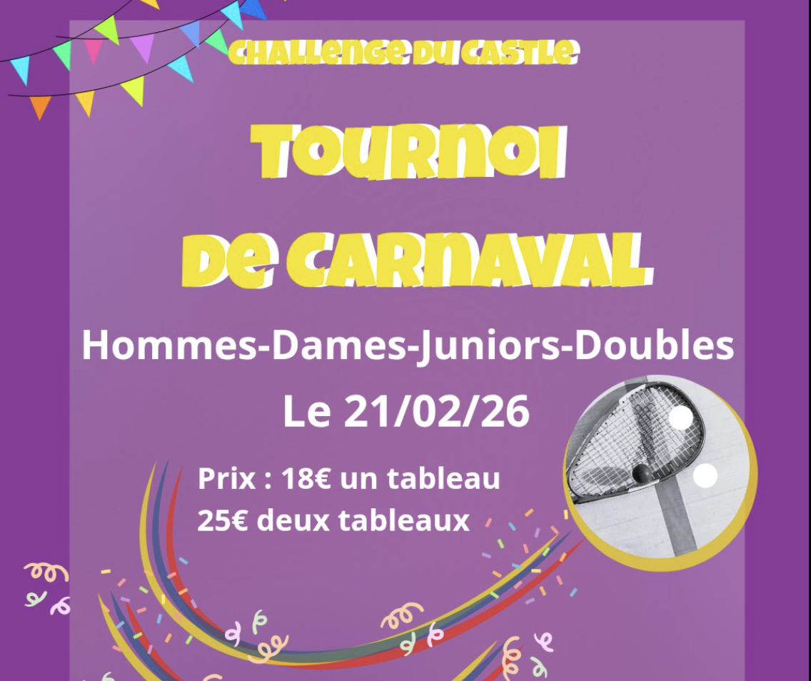 Challenge du Castle – Tournoi de Carnaval Squash Le Samedi 21 Février